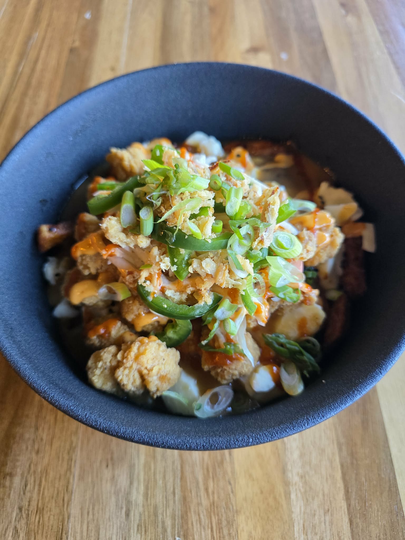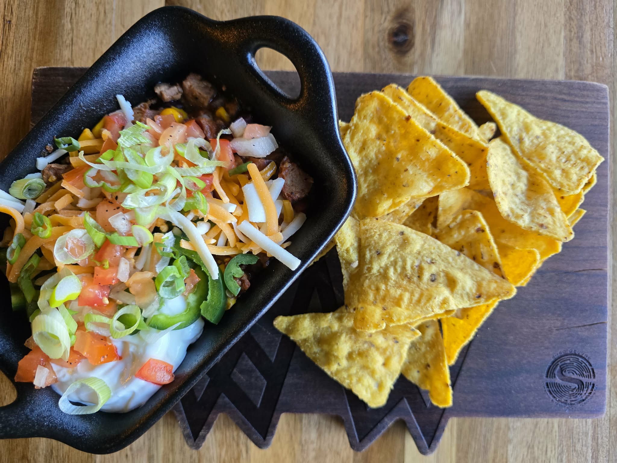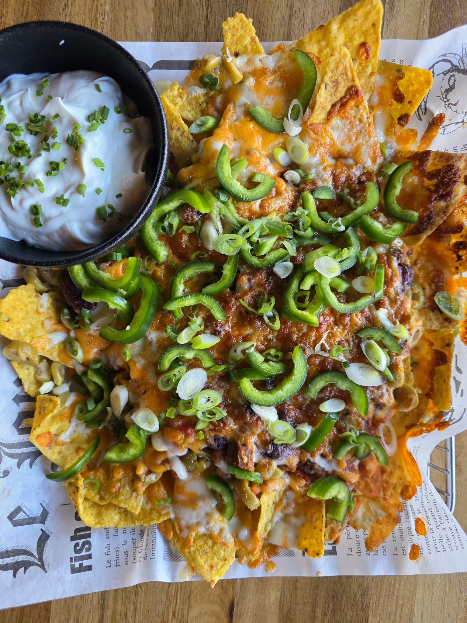 Chili full viande, fromage, crème sûre, jalapeño frais, bruschetta, oignon vert et chips de mais. CALMARS FRITS